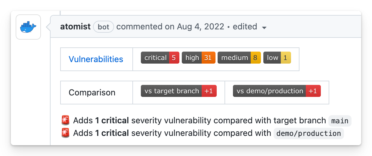 But what if we could also get that CVE status in our PRs with GitHub Actions? It could scan for CVEs, and tell you not just your vulnerability count but also the difference between the PR and where you're trying to merge to. That's huge to me. Many of us just want to know this when we're requesting a code or infrastructure change: