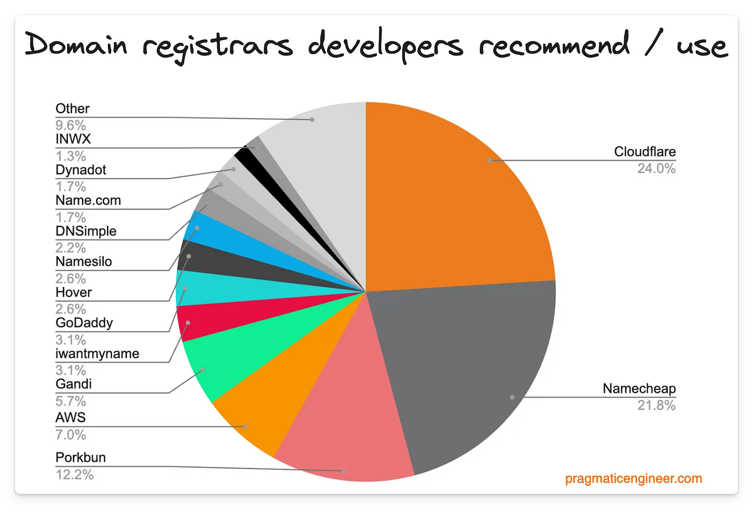 So, when Cloudflare, a service I was already using for many things, started offering registrar services at no markup. It was game over for me with all the other registrars. I had mad respect for, and trust with, Cloudflare. They were now the cheapest for long-term domain holding. For the last few years, I've slowly moved every TLD Cloudflare supports over to them, saving hundreds a year, and it's been great.