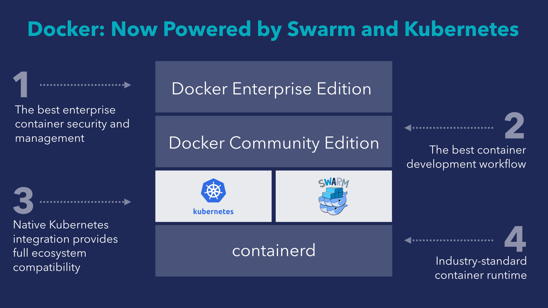 The TL;DR direct quote from Docker blog after the 2017 Kubernetes announcement: